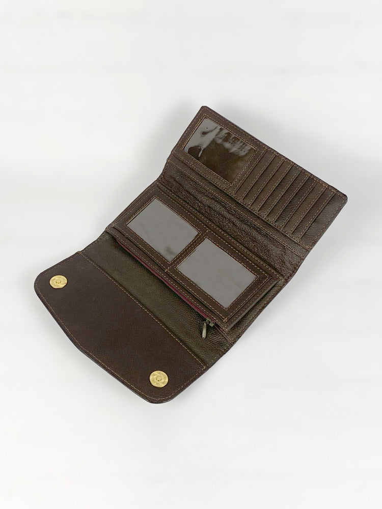 The wallet is thoughtfully structured with multiple card slots, 3 clear ID windows, and ample compartments for cash and receipts, ensuring that your essentials are organized and easily accessible. Perfect for daily use or special occasions, the Tooled Leather Feather Wallet seamlessly marries functionality with rustic elegance, making it an essential accessory for any fashion-conscious individual.
